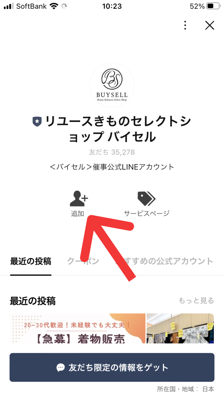 ※リユースきものセレクトショップバイセルのLINE公式アカウント
